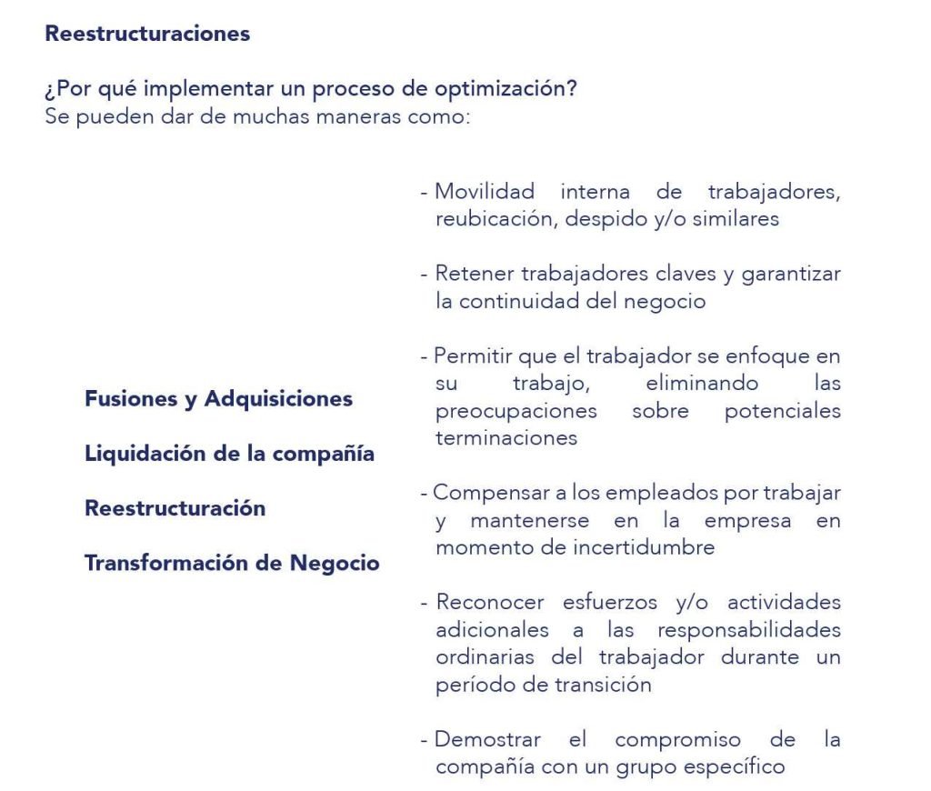 Un correcto manejo de la reorganización permite minimizar el impacto y consecuencias que las compañías deben asumir cuando se toman esta clase de decisiones.